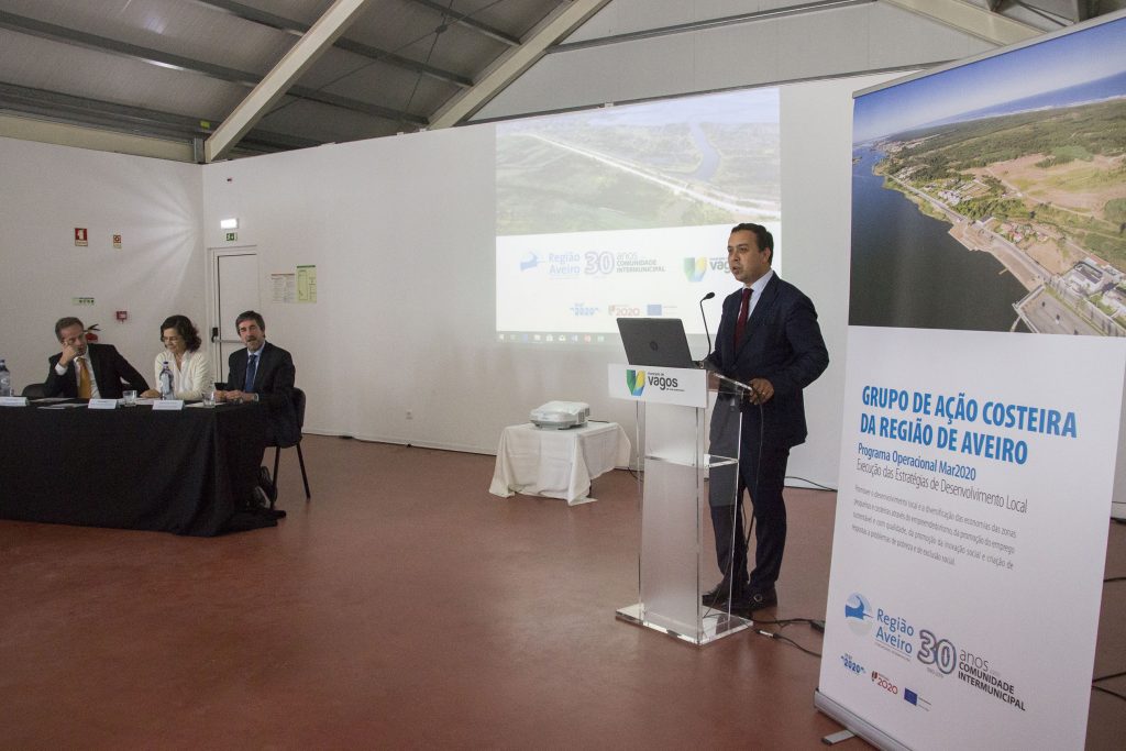Nesta sessão, estiveram representados os municípios de Vagos, Ílhavo, Murtosa, Aveiro, bem como entidades privadas, que viram os seus projetos aprovados através da candidatura ao programa operacional MAR2020.