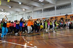 Foi no passado sábado, dia 16 de março, pelas 16h30, que o pavilhão municipal recebeu mais de três centenas de pessoas, para experimentar a mega aula de zumba, a maior da região de Aveiro. Ao som de ritmos latinos, os 22 instrutores de zumba ensinaram as coregrafias típicas de uma aula de zumba fitness.