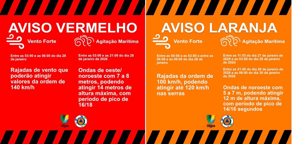 AVISOS VERMELHO E LARANJA | VENTO E AGITAÇÃO MARÍTIMA
