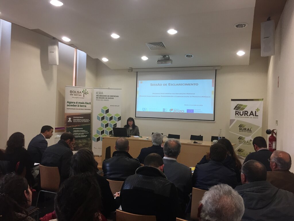 Realizou-se, no passado dia 12 de abril de 2018, no auditório da Biblioteca Municipal de Vagos, a sessão de esclarecimento no âmbito do Projeto “RURAL + - Estratégia Rural de Vagos ”, organizada pelo Município de Vagos, através da sua Incubadora de Empresas. Esta sessão, vem no seguimento da aposta no desenvolvimento das potencialidades do setor rural, agrícola, agroalimentar, agronegócio e florestal local, áreas de enfoque da Estratégia Rural de Vagos, a qual contempla três grandes áreas de intervenção: Bolsa de Terras de Vagos (BTV), Serviço de Apoio Agrícola (SAA) e o Empreendedorismo Agro.