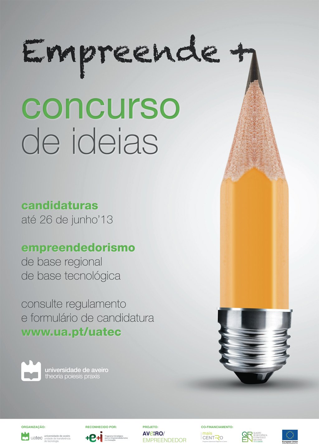 A edição de 2013, do «Concurso de Ideias Empreende +», é uma das ações do projeto Aveiro Empreendedor. Este projeto resulta do trabalho conjunto de diversos atores locais e regionais no âmbito do fomento do empreendedorismo e apoio às PME.