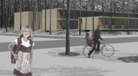A cantina e a biblioteca, as salas de informática, ATL e CAF com os respectivos apoios, ocupam o lado Poente dos mesmos corpos, marcando a sua autonomia funcional.