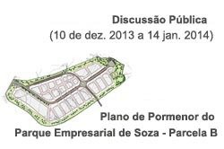 Tendo o Plano de Pormenor do Parque Empresarial de Soza – Parcela B, obtido parecer favorável das entidades, na reunião de conferência de serviços realizada no passado dia 4 de novembro de 2013, informa-se que se encontra aberto o período de discussão pública no período compreendido entre 10 de dezembro de 2013 a 14 de janeiro de 2014, para a formulação de sugestões ou de informações sobre quaisquer questões que devam ser consideradas no âmbito da proposta de plano.