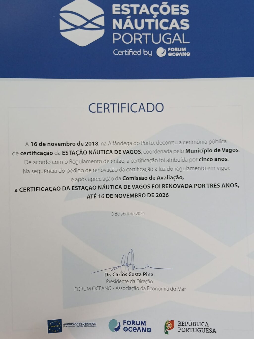 - Estação Náutica de Vagos recebe certificado de renovação no evento Business2Sea 2024