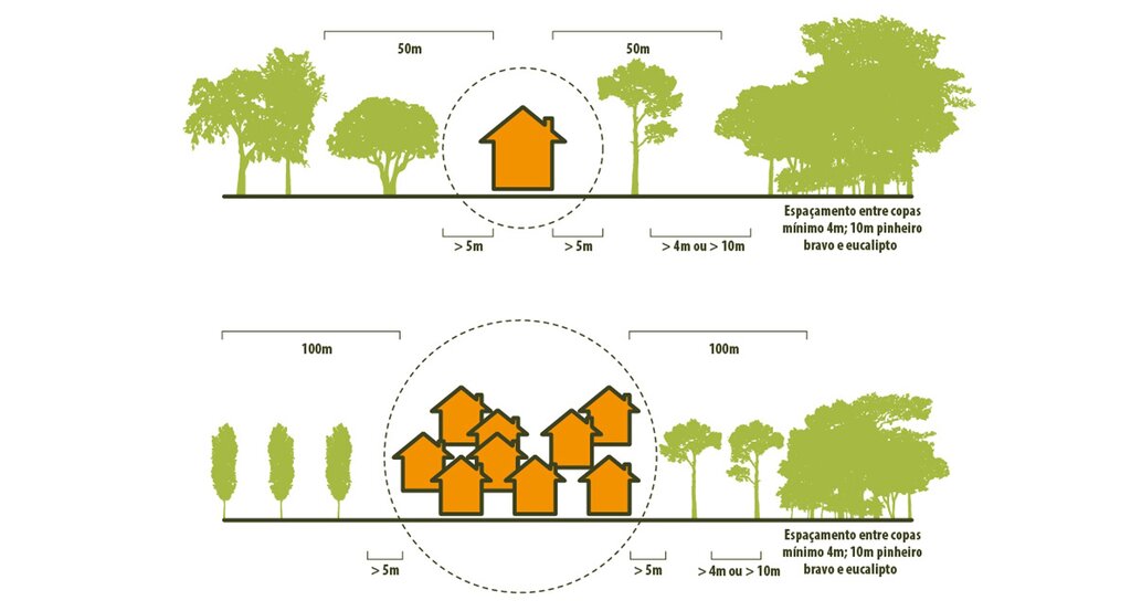 Os proprietários, arrendatários, usufrutuários ou entidades que, a qualquer título, detenham terrenos confinantes a edifícios inseridos em espaços rurais têm de proceder à gestão de combustível numa largura de 50 metros à volta da edificação e numa largura de 100 metros à volta dos aglomerados populacionais.