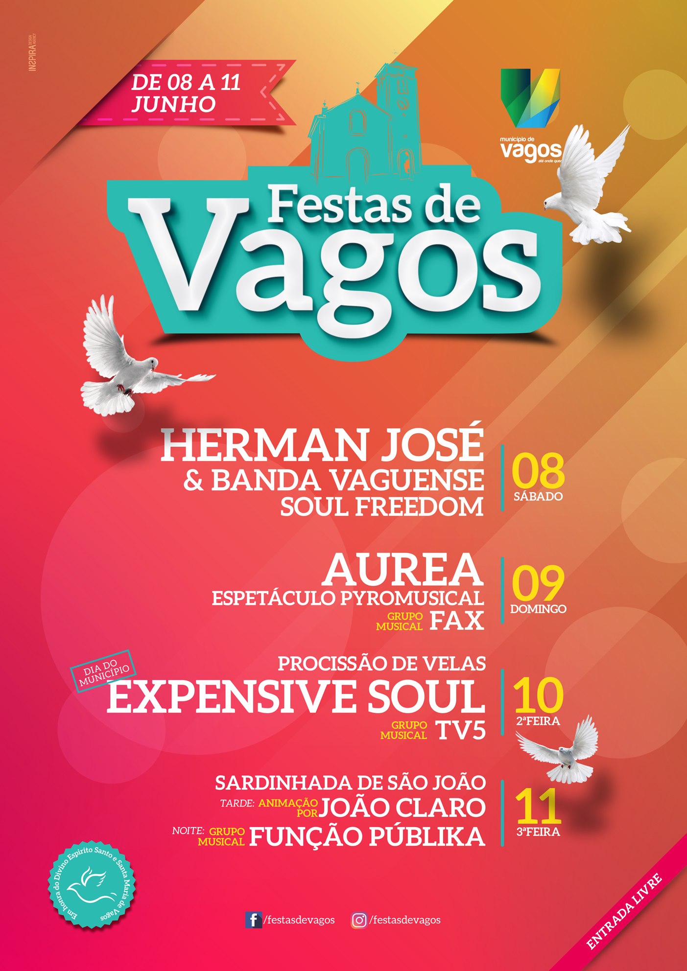 A Câmara Municipal de Vagos realiza, entre os dias 08 e 11 de junho de 2019, as Festas de Vagos em Honra do Divino Espírito Santo e Santa Maria de Vagos.