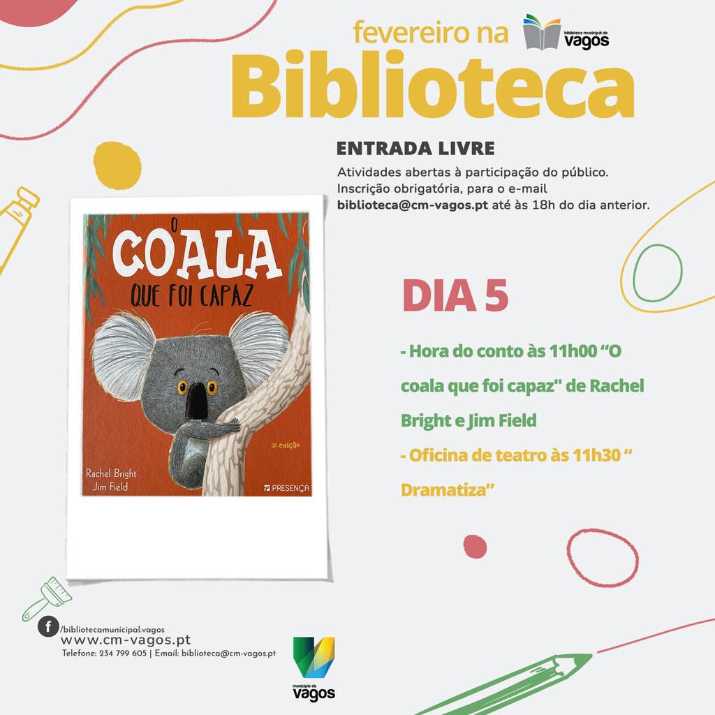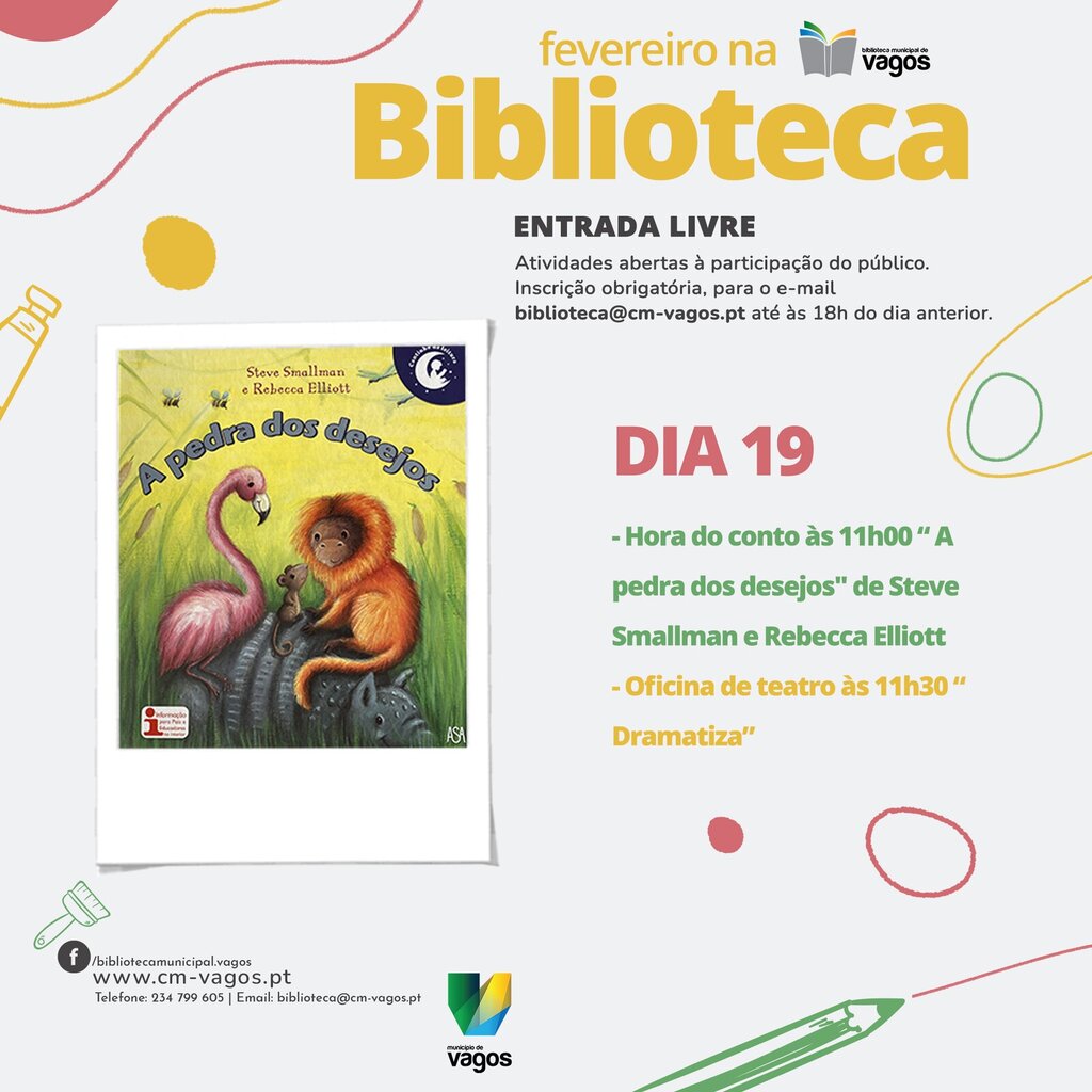 A Biblioteca Municipal João Grave, em Vagos, apresenta em fevereiro, aos sábados, a hora do conto e ainda as oficinas de teatro e das artes. Estas atividades pretendem promover nas crianças o gosto pela leitura.