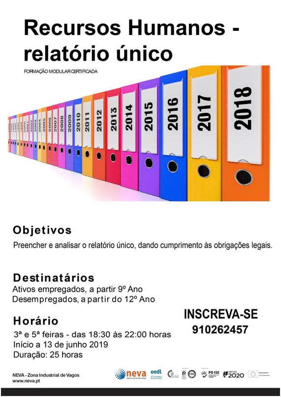 Inicia no próximo 13 de junho de 2019, quinta-feira, nas instalações do NEVA, Núcleo Empresarial de Vagos, a formação financiada de RECURSOS HUMANOS – RELATÓRIO ÚNICO.