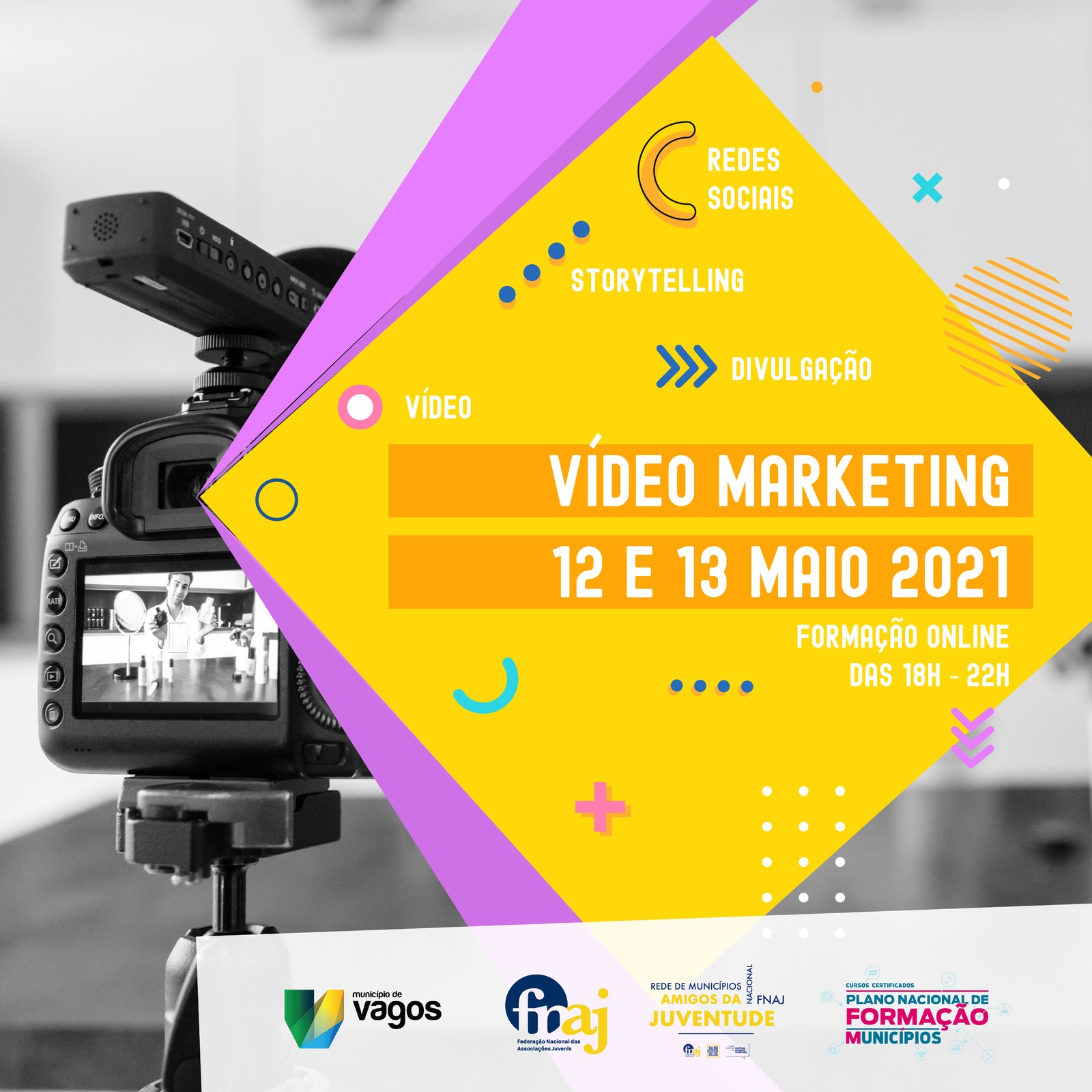 - Objetivo: Formação e sensibilização de dirigentes associativos/as, voluntários/as e técnicos/as de Juventude para o Vídeo Marketing e as suas diferentes aplicações.