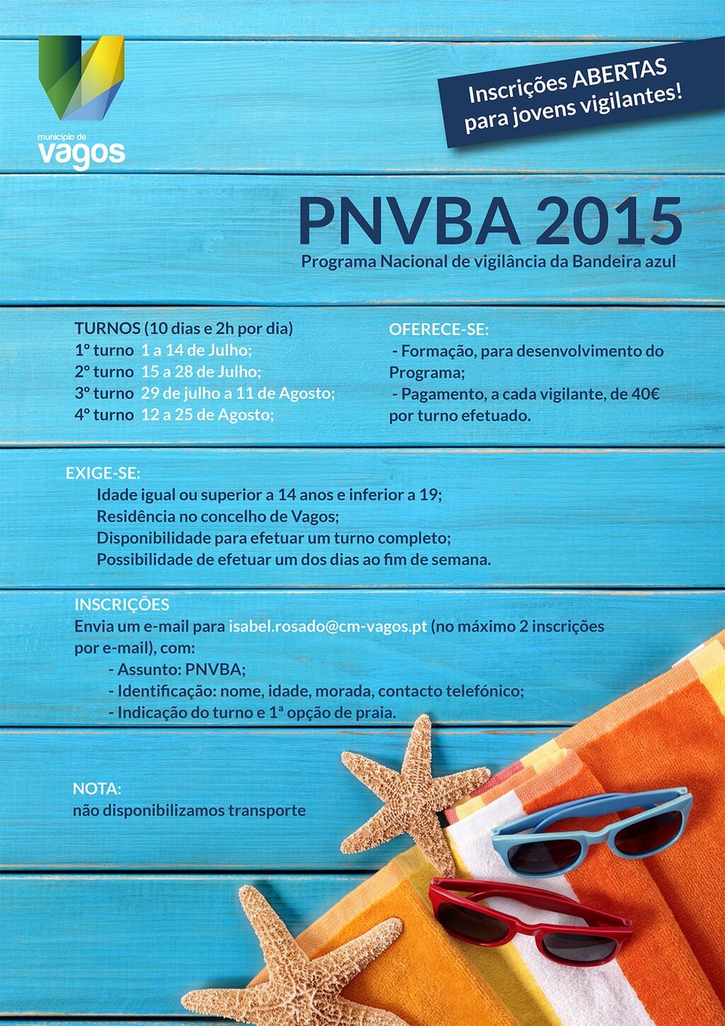 Para te inscreveres, basta enviar um e-mail para isabel.rosado@cm-vagos.pt (no máximo 2 inscrições por e-mail), com:
