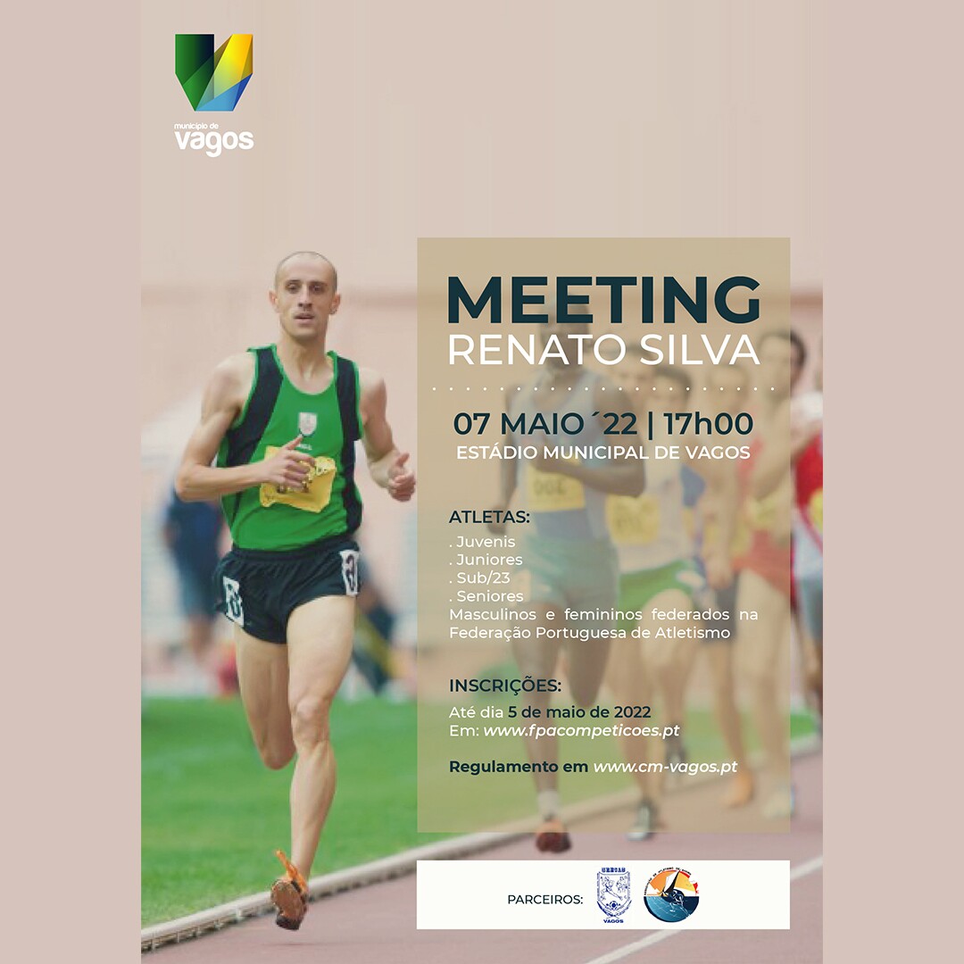 No próximo sábado, dia 7 de maio, o Estádio Municipal de Vagos vai acolher o Meeting Renato Silva. Este evento tem a organização do Município de Vagos em parceria com o GRECAS e com a Associação de Atletismo de Aveiro e, para além da competição, terá como objetivo homenagear o reconhecido atleta vaguense que, entre outros, ostentou as cores do Grecas e do Sport Lisboa e Benfica.