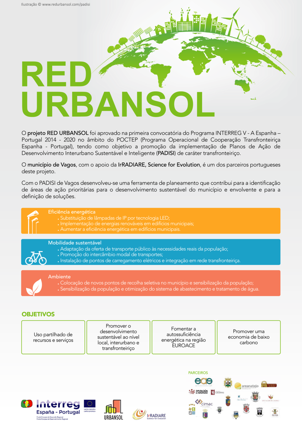 O Município de Vagos integra a rede de parceiros do Red UrbanSol e através das ações definidas no PADISI de Vagos, desenvolveu-se uma ferramenta de planeamento que contribui para a identificação de áreas de ação prioritárias para o desenvolvimento sustentável do município e envolvente, e para a definição de soluções nas seguintes áreas:
