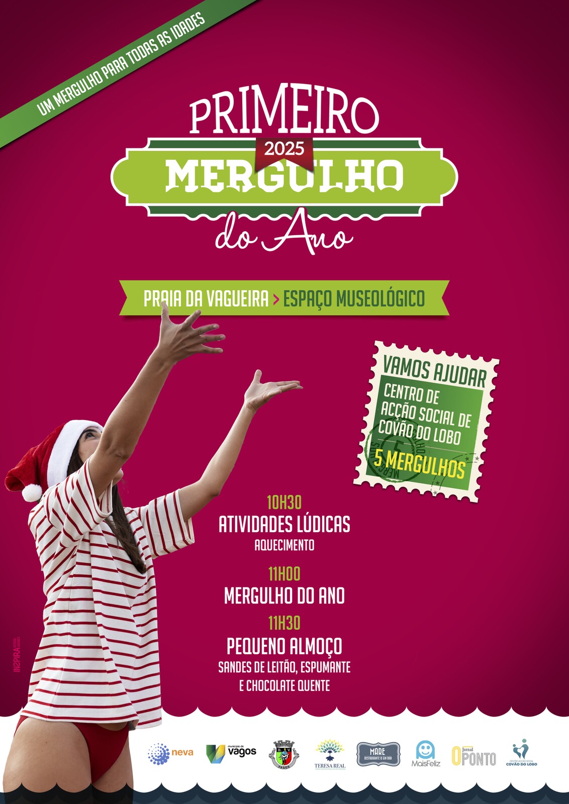 No próximo dia 1 de janeiro de 2025, o Núcleo Empresarial de Vagos, com o apoio do Município de Vagos, vai levar a cabo mais uma edição do 1º Mergulho do Ano. A partir das 10h30 da manhã, realizam-se as tradicionais atividades lúdicas, compostas por divertidos exercícios de aquecimento, com a participação do Prof. Fernando Batista, percursor da Risoterapia através do projeto + Feliz.