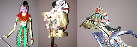 4 excelentes sombras (Wayang Kulit) recortadas minuciosamente em pele e 2 fantoches de varas passam agora a integrar o acervo que se encontra em exposição.