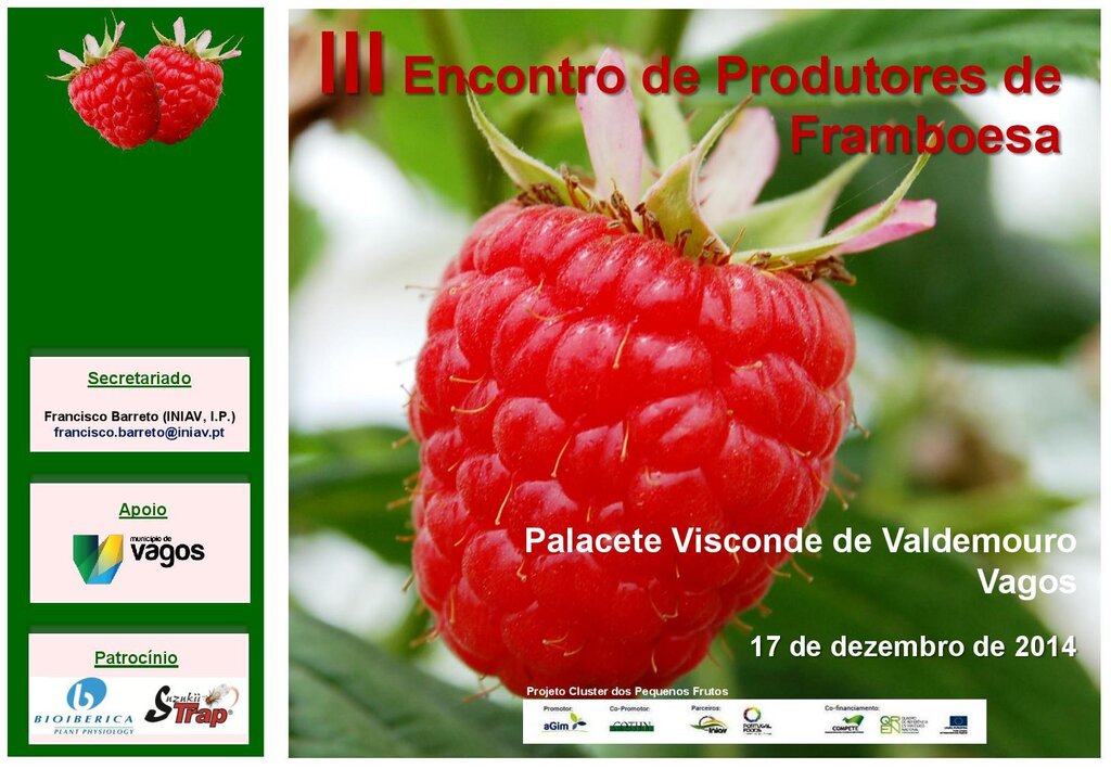 Irá decorrer no dia 17 de dezembro de 2014, pelas 10h, no Palacete Visconde de Valdemouro (antiga Câmara Municipal de Vagos) o III Encontro de Produtores de Framboesa.