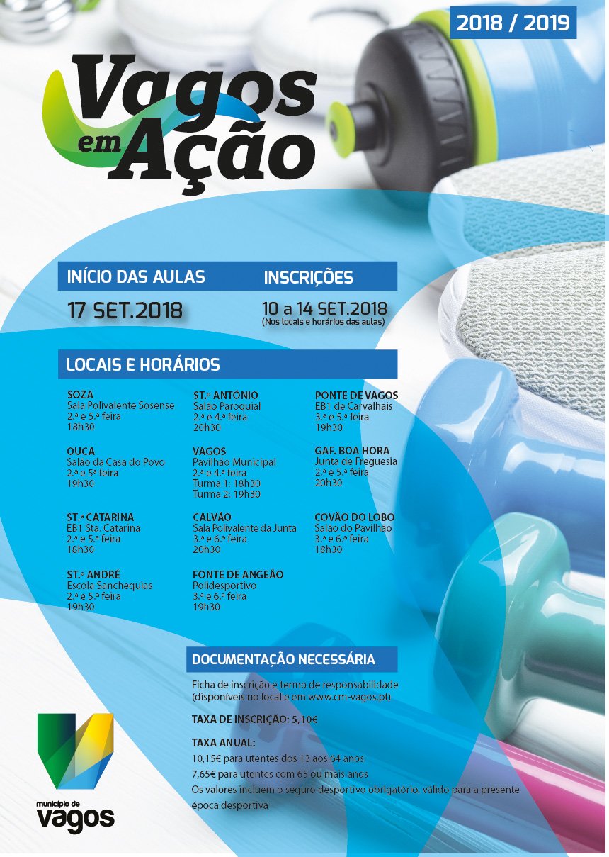 Realizam-se, de 10 a 14 de setembro de 2018, as inscrições para o programa municipal “Vagos em Ação”, para a época de 2018/2019!