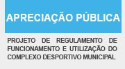 Torna-se público que se encontra em apreciação pública, pelo prazo de 30 dias, de 13 de dezembro de 2013 a 13 de janeiro de 2014, nos termos do disposto no artigo 118º do Código do Procedimento Administrativo, e para posterior aprovação pela Assembleia Municipal de Vagos, o projeto de “Regulamento de Funcionamento e Utilização do Complexo Desportivo Municipal de Vagos”.