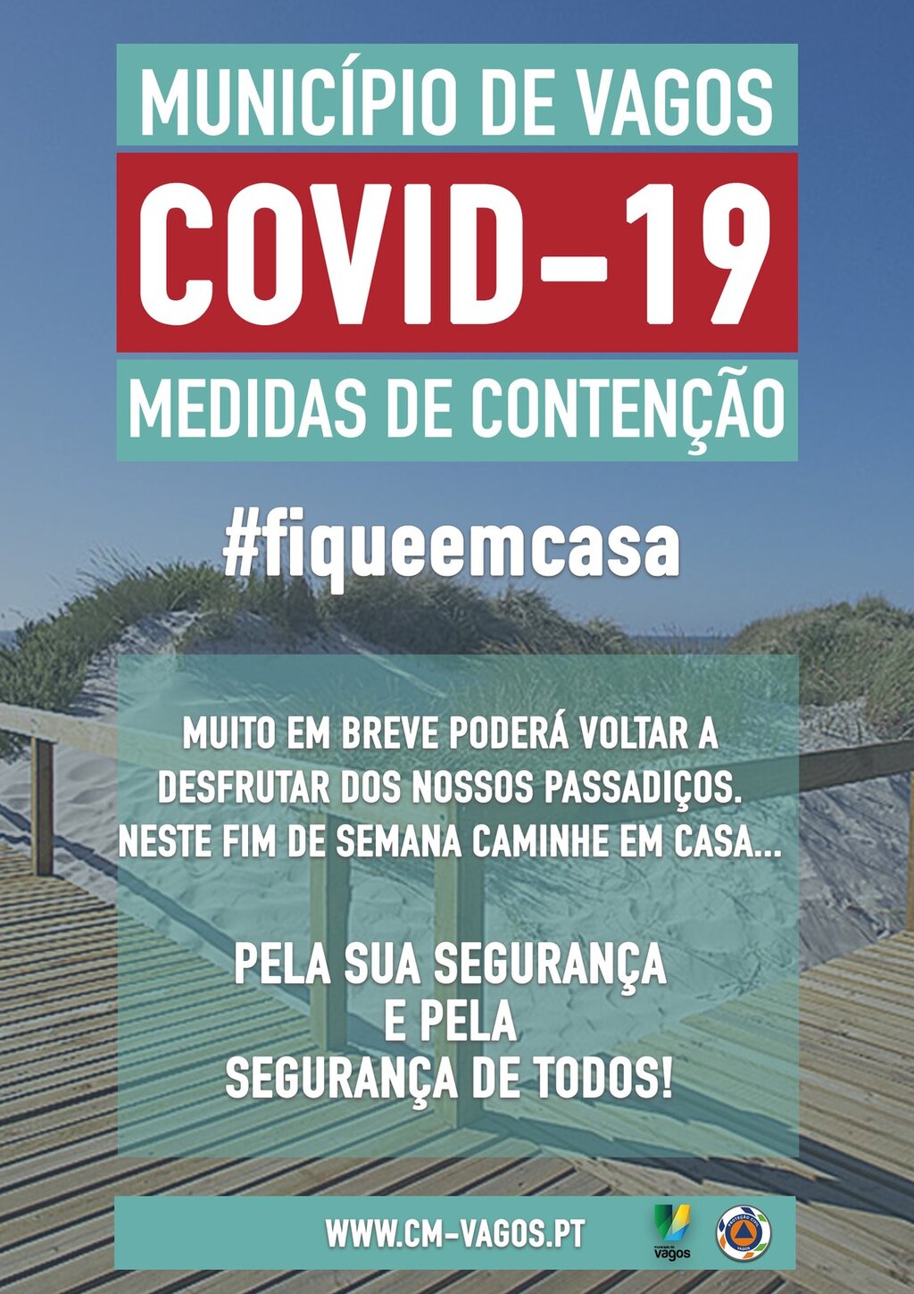 Dando cumprimento às orientações emanadas pela DGS, no âmbito do combate ao Covid-19, o Município de Vagos pede a todos os Munícipes que neste fim de semana não utilize os Passadiços da Vagueira, a fim de evitar a concentração e o aglomerado de pessoas.