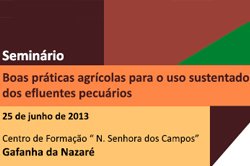 No âmbito do projeto “Boas Práticas Agrícolas para o Uso Sustentado dos Efluentes Pecuários”, do Programa da Rede Rural Nacional, vocacionado para as Zonas Vulneráveis de Estarreja-Murtosa e Litoral Centro, a DRAPCentro - Centro de Formação Nª Senhora dos Campos - Gafanha da Nazaré irá realizar amanhã, dia 25 de junho de 2013, pelas 9h30, um Seminário, tendo em vista a sensibilização para a problemática da Diretiva Nitratos e do seu impacte na produção agropecuária, designadamente na gestão dos efluentes pecuários.