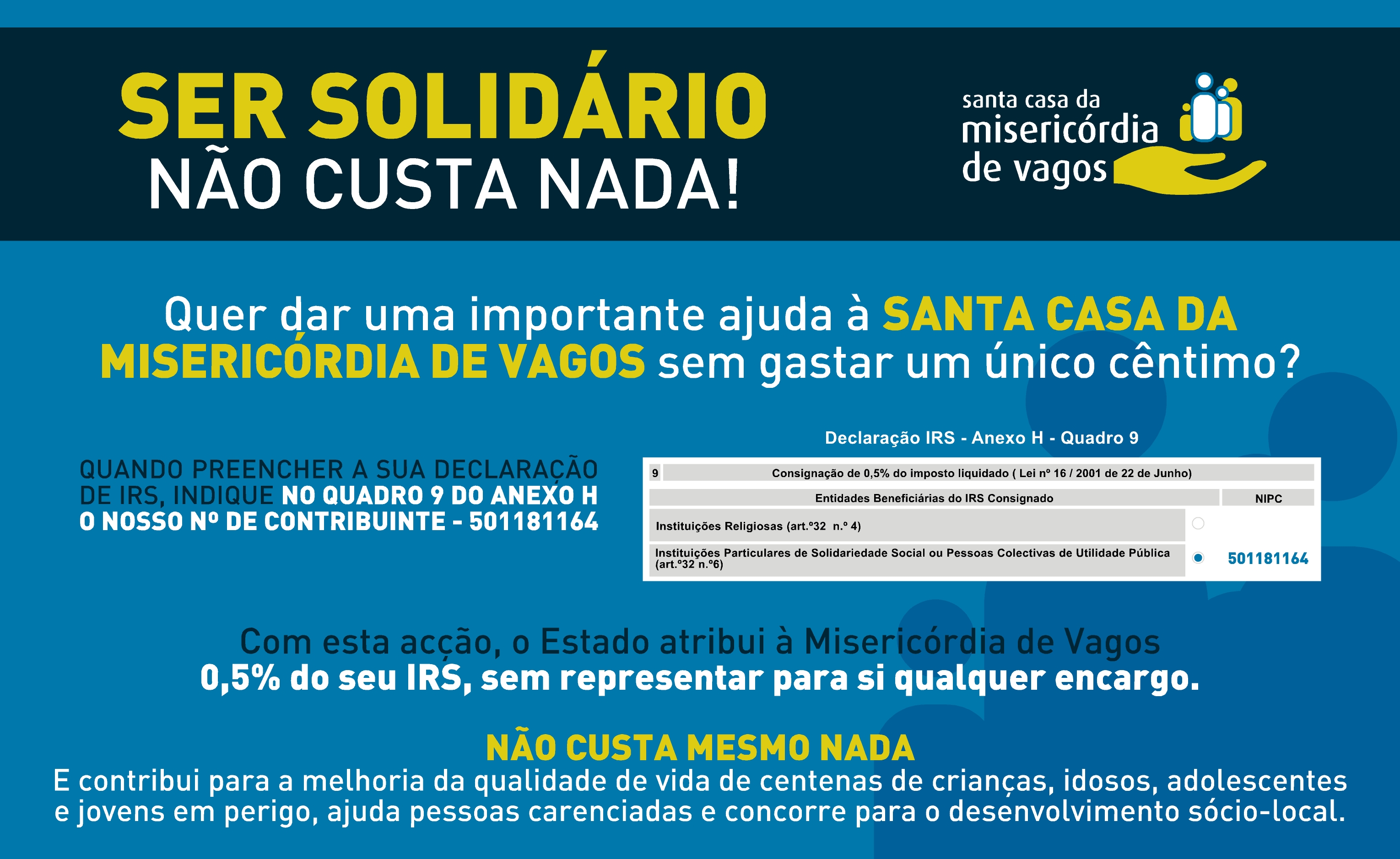 Quando preencher a sua declaração de IRS, indique no quadro 9 do anexo H o número de contribuinte da Santa Casa da Misericórdia de Vagos: 501181164