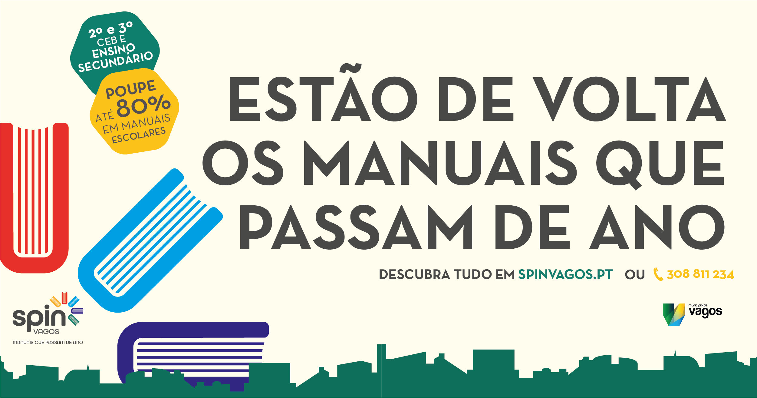É para ultrapassar estes obstáculos que o município lança o Programa SPIN Vagos, um sistema profissional e com garantia de qualidade, que permite aos munícipes recuperar 20% das despesas com manuais dos anos anteriores e poupar 60% do PVP nos manuais para o próximo ano.