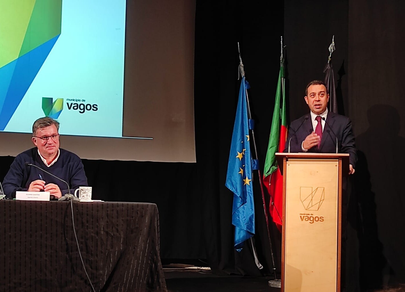 Com mais de três dezenas de pessoas na assistência - desde autarcas, a projetistas, construtores civis e agentes imobiliários - o evento contou com a presença de Álvaro Santos, representando a consultora Agenda Urbana, que tem vindo a trabalhar com o Município de Vagos neste processo e do Presidente da Câmara Municipal de Vagos, Silvério Regalado, como oradores desta sessão pública.