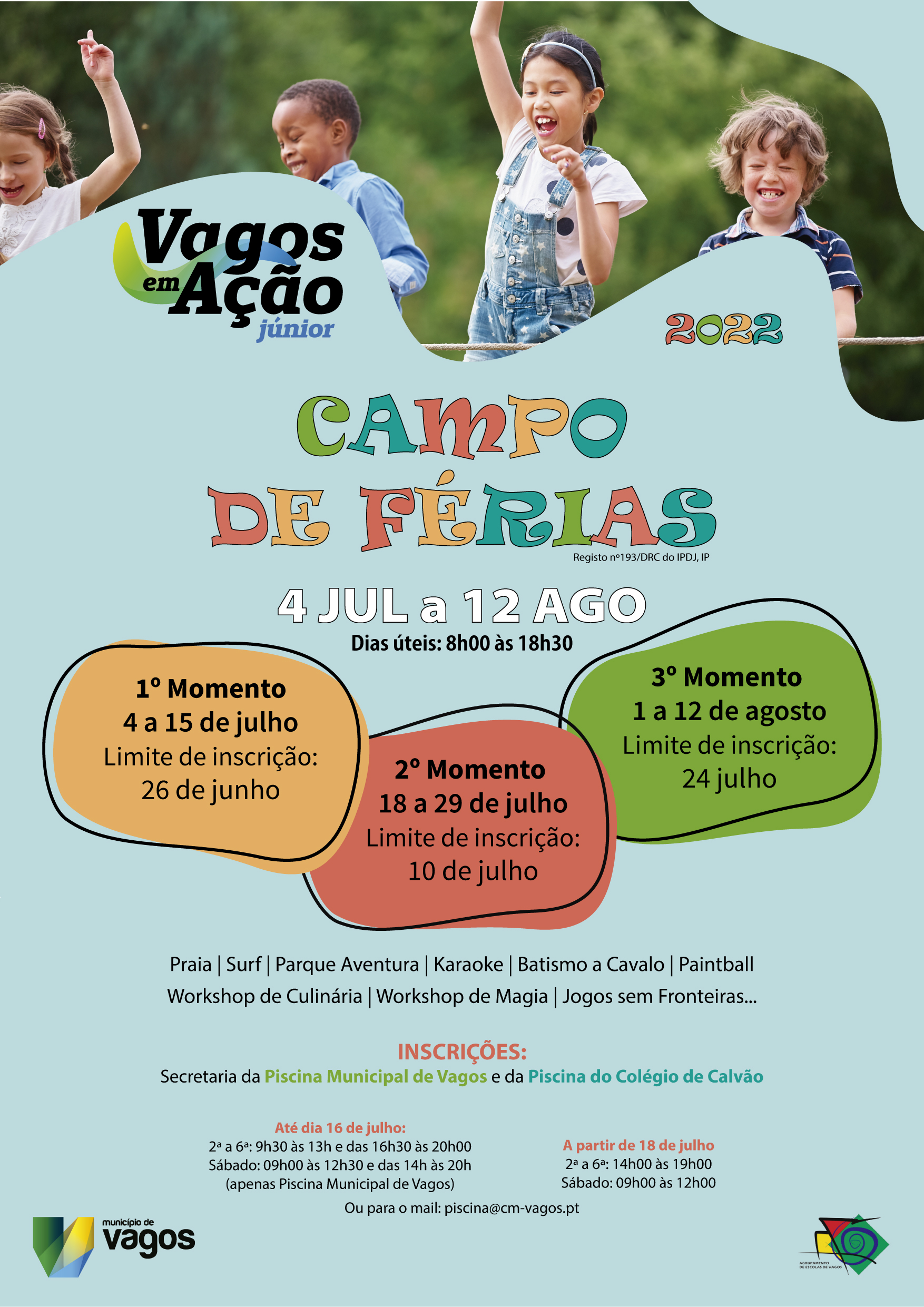 A Câmara Municipal de Vagos (CMV), em parceria com o Agrupamento de Escolas de Vagos, encontra-se a organizar o Programa Municipal Vagos em Ação Júnior – Verão 2022 (VEAJ).