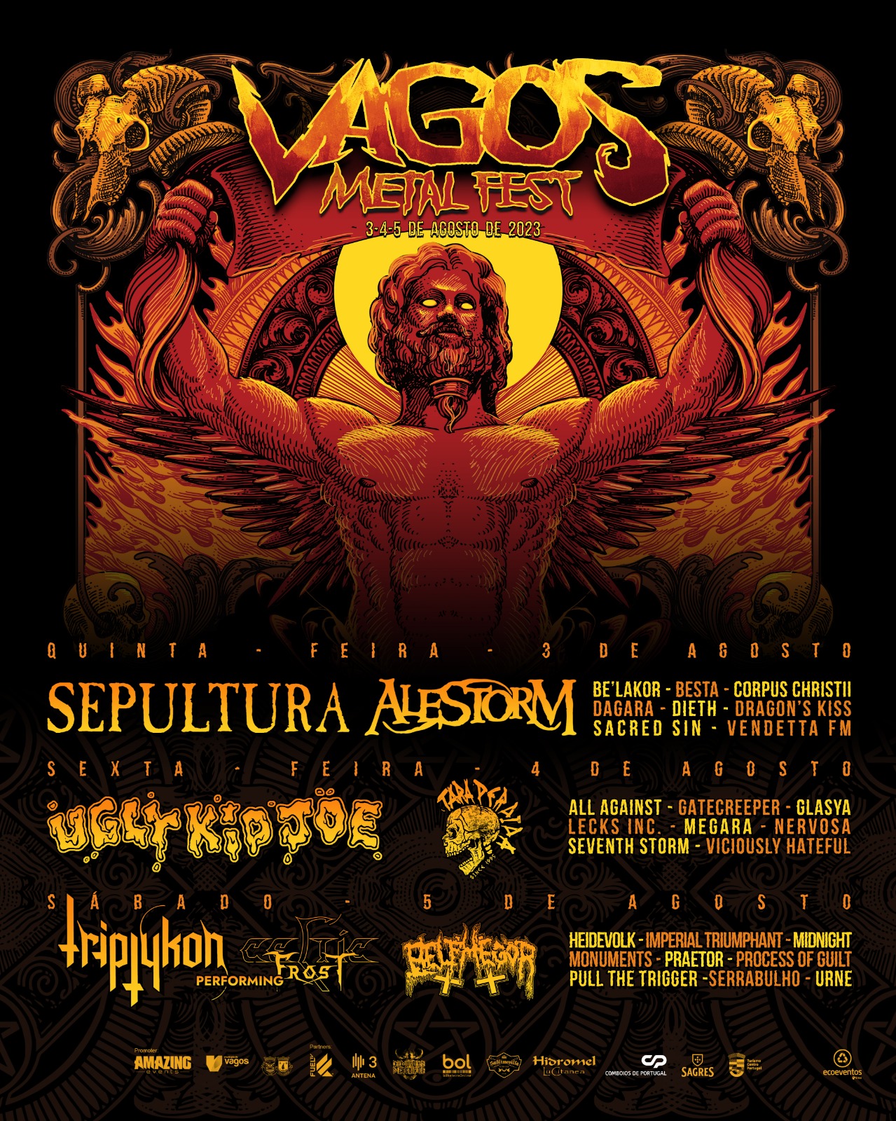 O Vagos Metal Fest (VMF) regressa à Quinta do Ega para a sua sexta edição, nos próximos dias 3, 4 e 5 de agosto de 2023. O festival tem vindo a marcar a sua posição de referência dentro da comunida-de metaleira, tanto a nível nacional como internacional.
