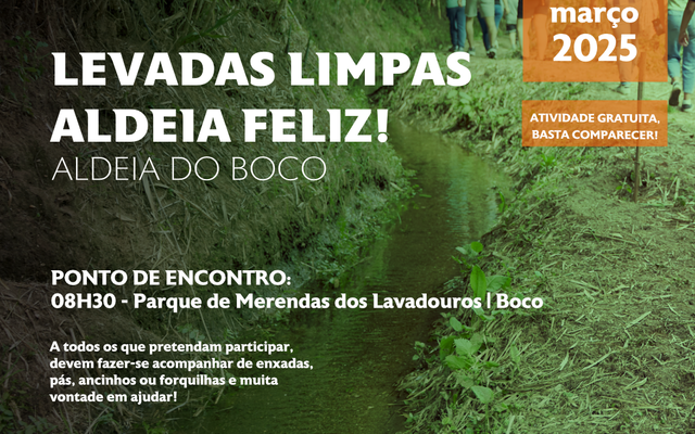 No próximo dia 22 de março, sábado, a Aldeia do Boco volta a organizar mais uma atividade “Levadas Limpas, Aldeia Feliz”, aberta a todos aqueles que queiram vir ajudar na ...
