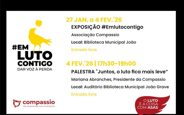 A Biblioteca Municipal João Grave recebe, no dia 4 de fevereiro de 2026, a palestra “Juntos, o luto fica mais leve” com Mariana Abranches, Presidente da Associação Compassio, e ...