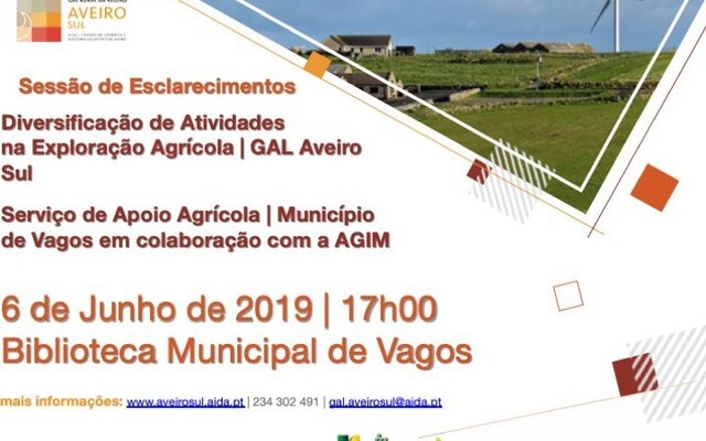 O GAL Aveiro Sul, em parceria com o Município de Vagos, promove uma sessão de esclarecimentos no próximo dia 6 de Junho, às 17h, na Biblioteca Municipal João Grave, relativa à ...