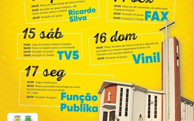 De 13 a 17 de junho de 2019, decorrem as Festas em honra de Santo António de Vagos.Consulte o cartaz com a programação.