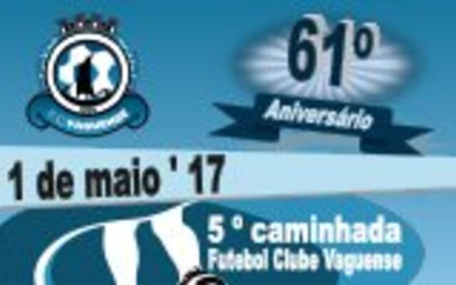 Inserida nas comemorações do 61.º aniversário do Futebol Clube Vaguense, terá lugar, no próximo dia 1 de maio 2017 , uma caminhada, pelas 10h00, com início no Estádio Municipal ...