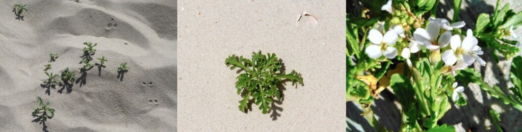 Chamam-me Eruca-marítima (Cakile maritima) e sou da família Cruciferae.