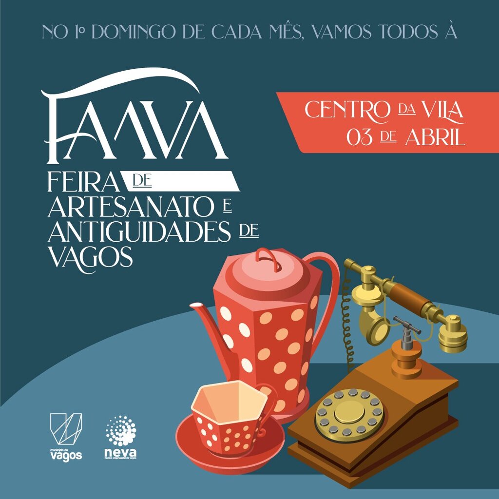 O Município de Vagos e o Núcleo Empresarial de Vagos (NEVA) irão realizar, no próximo dia 03 de abril de 2022, entre as 09h00 e as 18h00, na Pérgola de Vagos (Centro da Vila de Vagos), a primeira edição da FaaVa – Feira de Artesanato e Antiguidades de Vagos.
